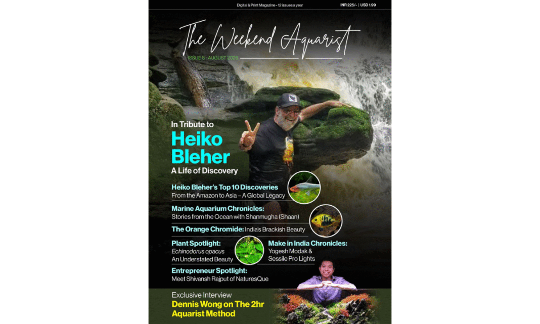 Mumbai, India – August 2025 – The Weekend Aquarist proudly announces the release of its August 2025 issue, a landmark edition dedicated to commemorating the life and legacy of Heiko Bleher, one of the most influential explorers and ichthyologists of our time. This special commemorative issue pays tribute to Bleher’s 75 years of aquatic exploration, celebrating his unparalleled contributions to documenting freshwater biodiversity, inspiring generations of aquarists, and advancing global awareness of conservation.